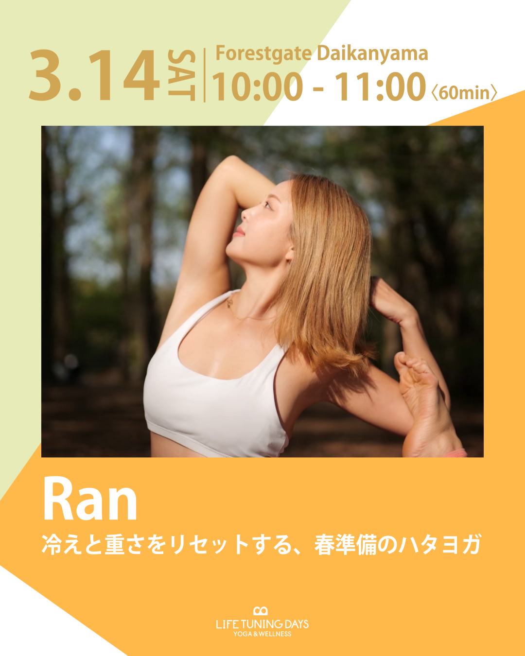 LIFE TUNING DAYS 「Daily Event」プログラムは、ヨガやフィットネスを“イベント”で終わらせず、平日や週末の定期レッスンとして日常に根づかせるプログラムです。