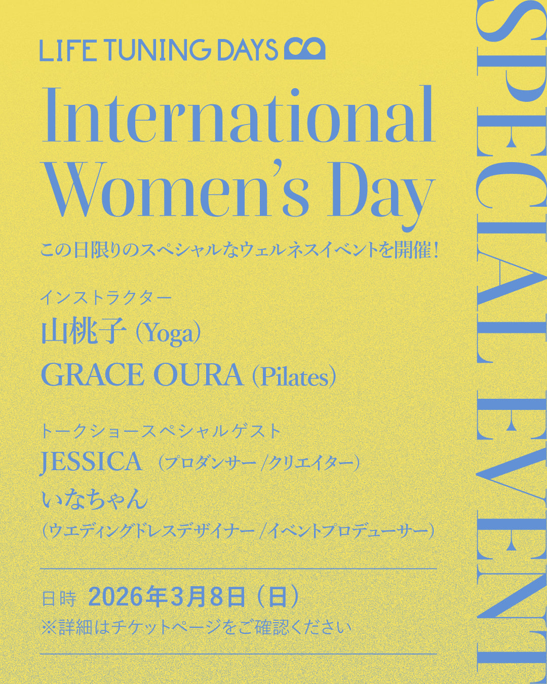 イベントタイトル:LIFE TUNING DAYS SPECIAL EVENT ‐International Women's Day‐ ※女性限定イベントとなります。
